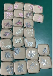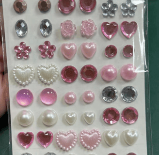 Finally, we create the face gems, placing each piece meticulously by hand to create beautiful, DIY face gems for various uses. Here is the finished product image.