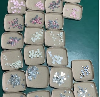 Our face gems production process is a detailed and creative journey that begins with designing the patterns. Skilled designers sketch unique shapes and layouts, making each piece visually appealing.